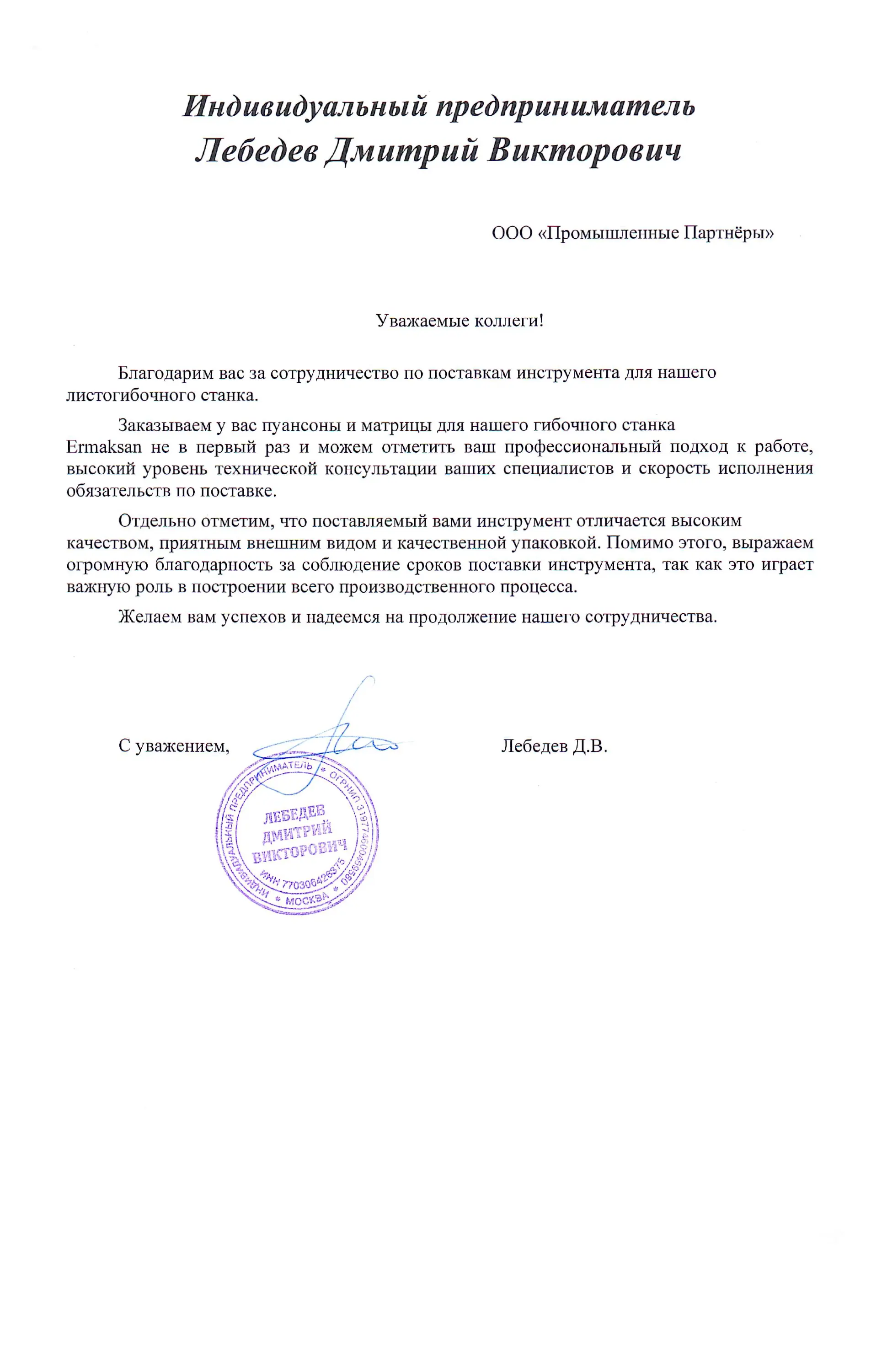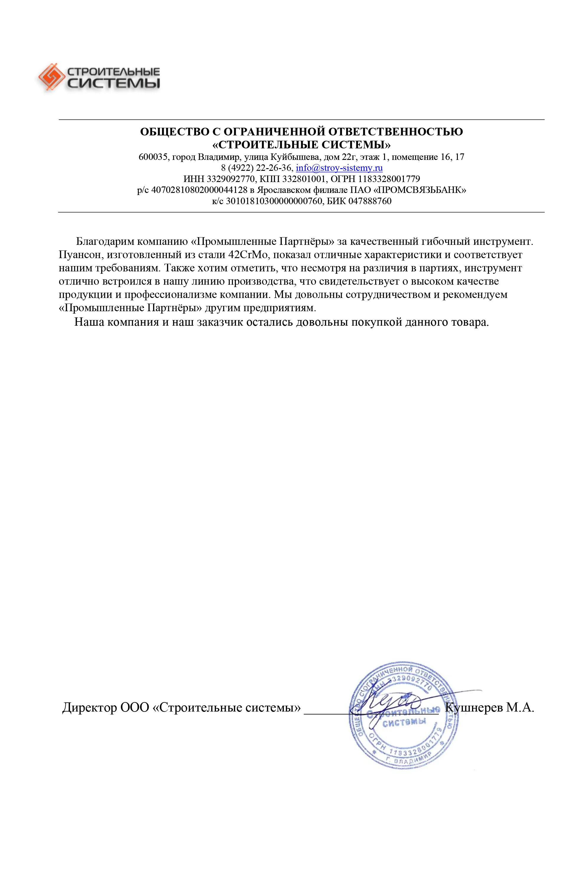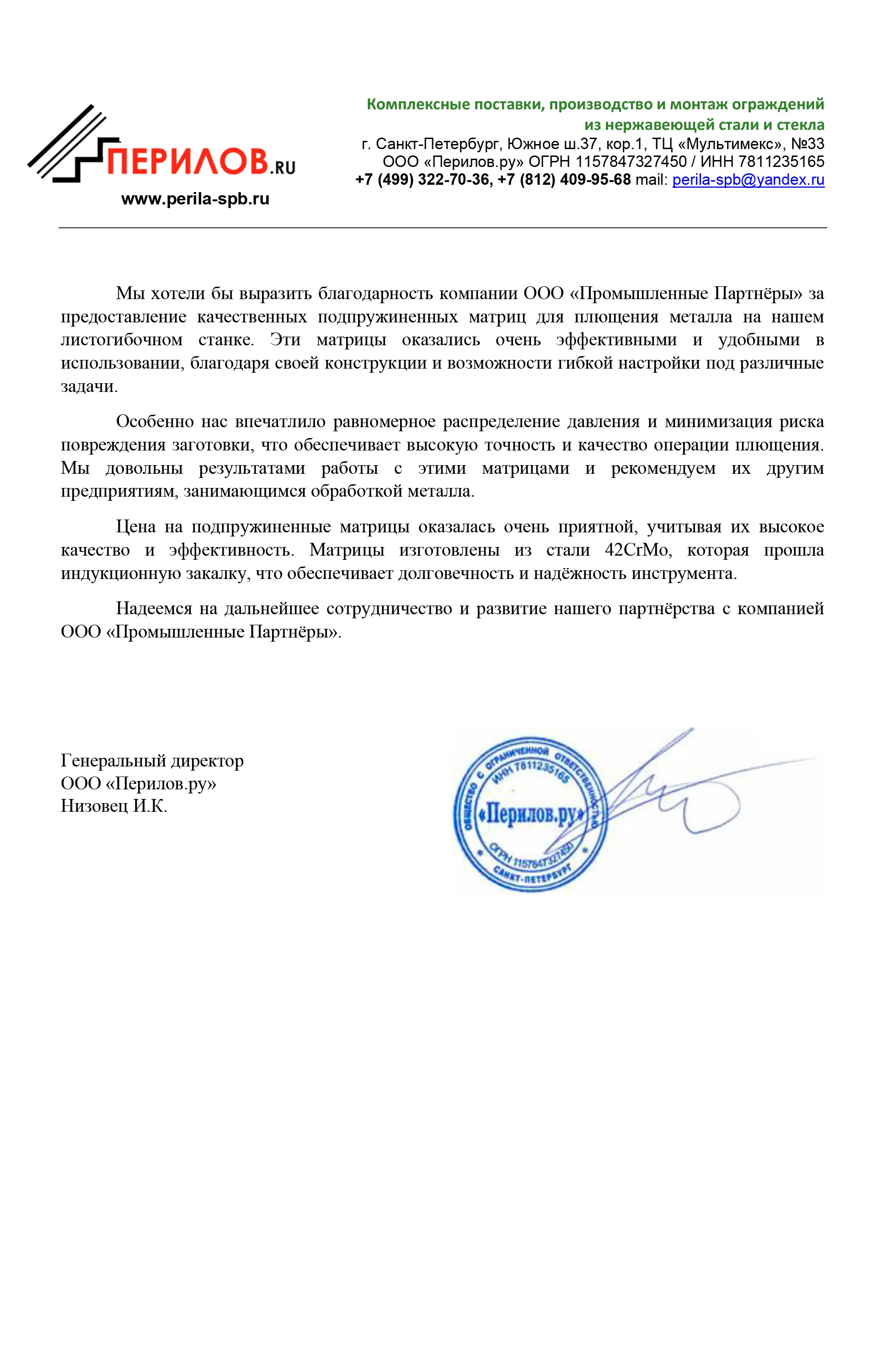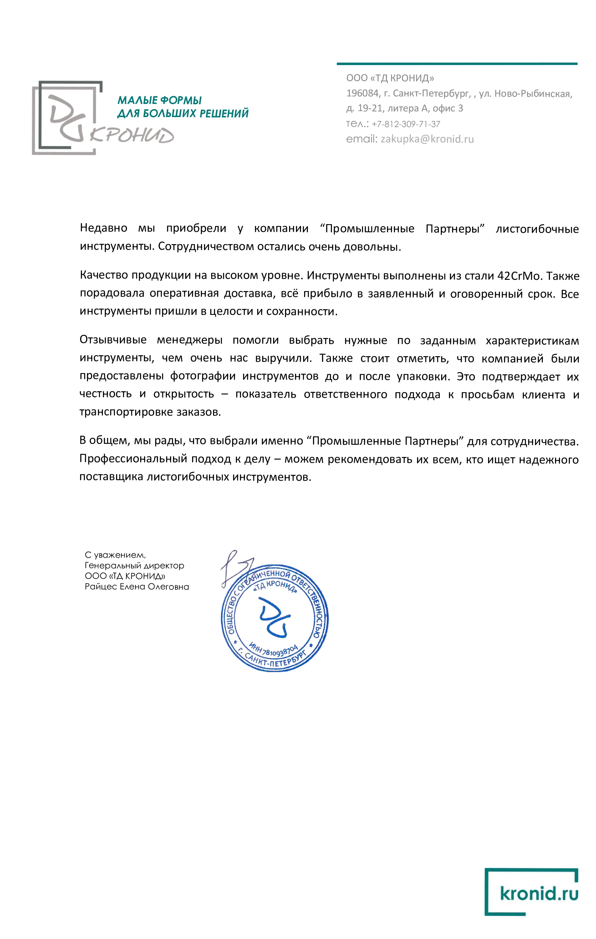 Отзывы | Промышленные Партнёры