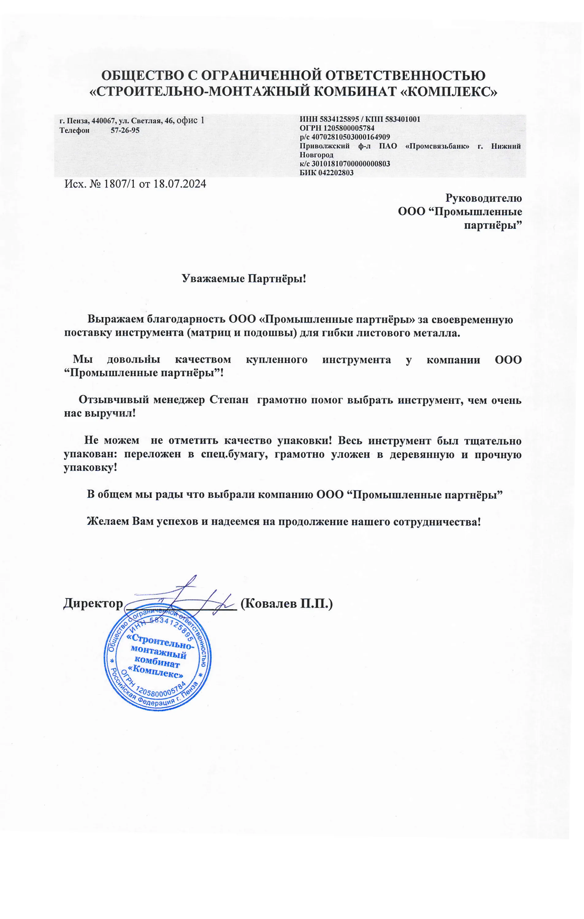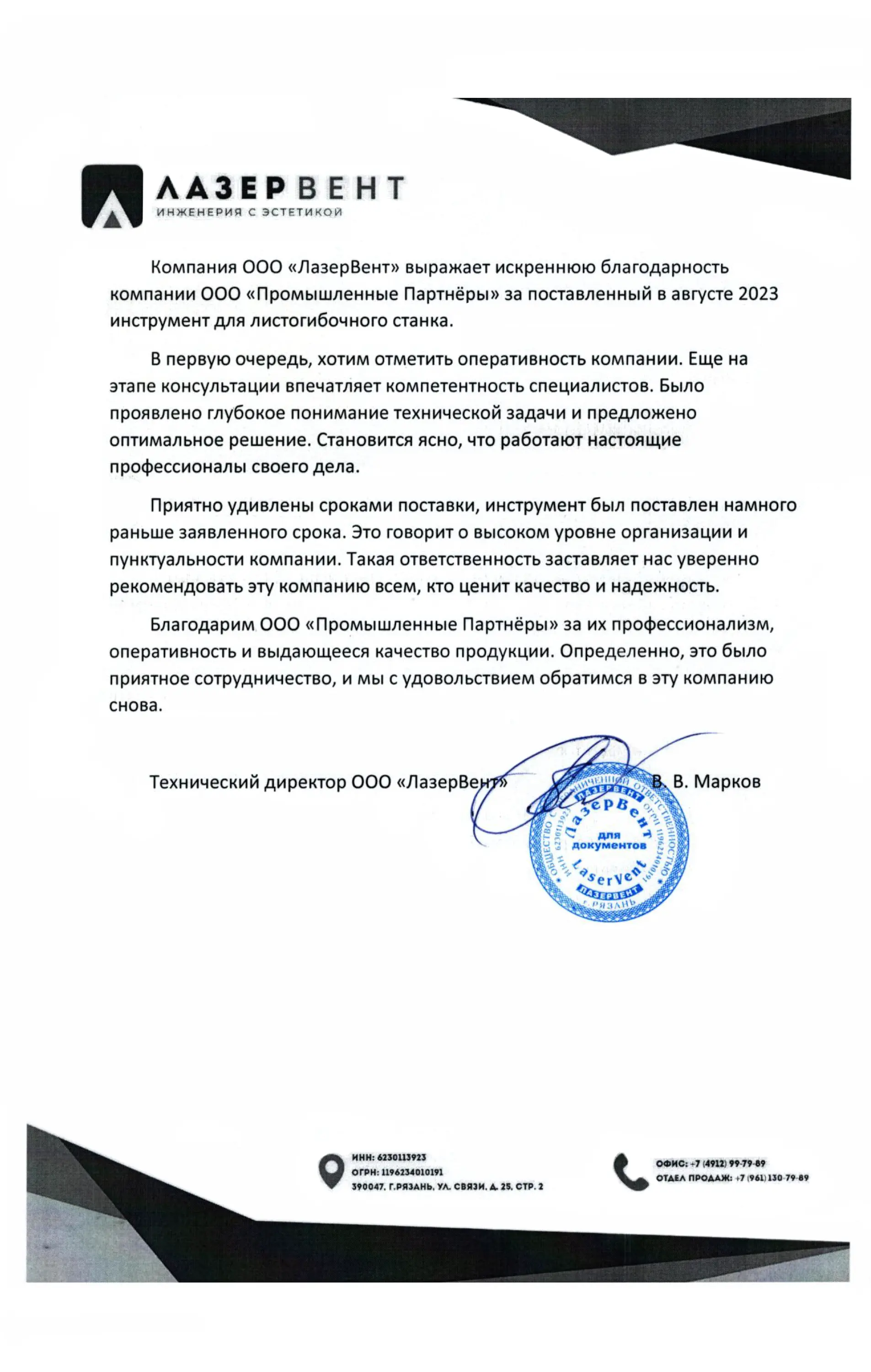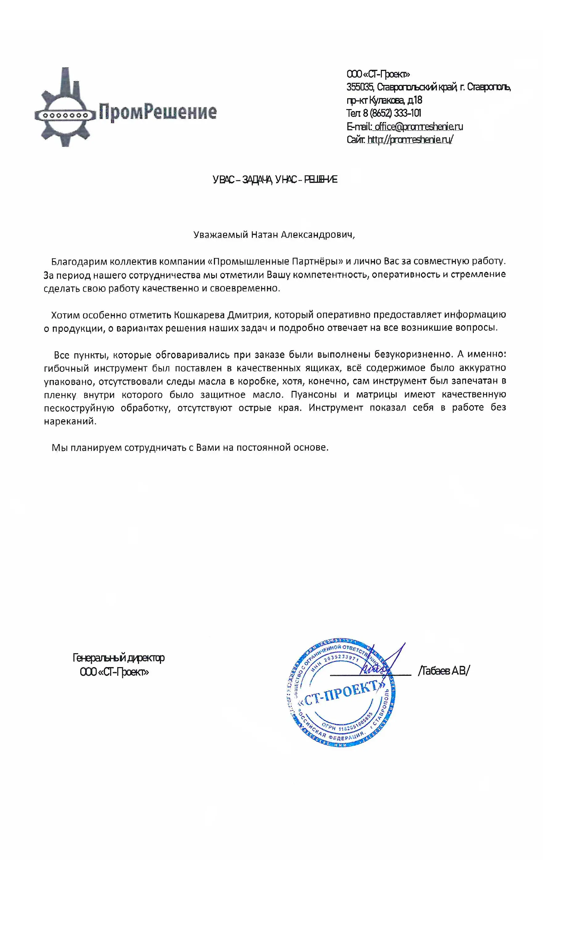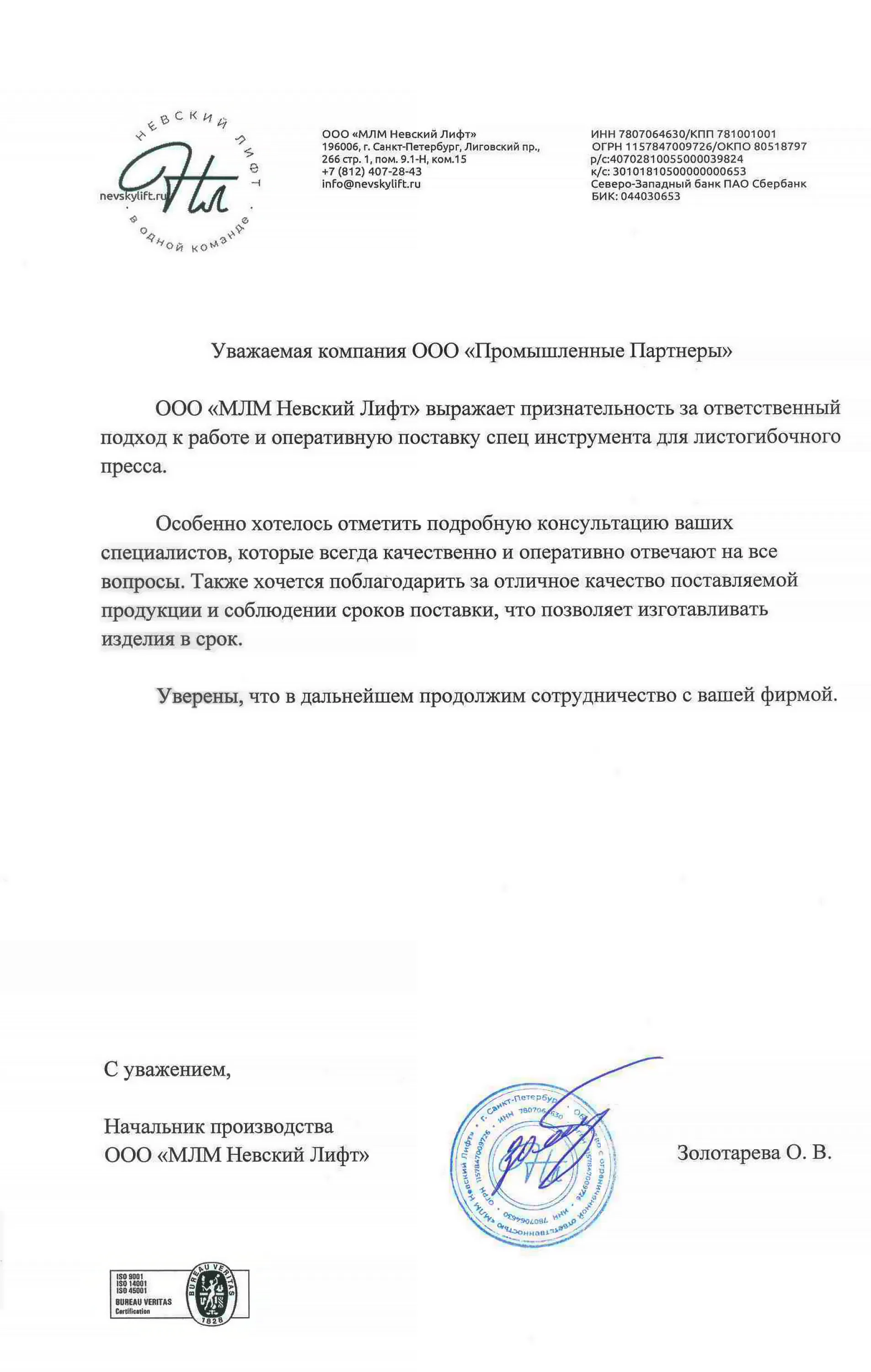 Отзывы | Промышленные Партнёры