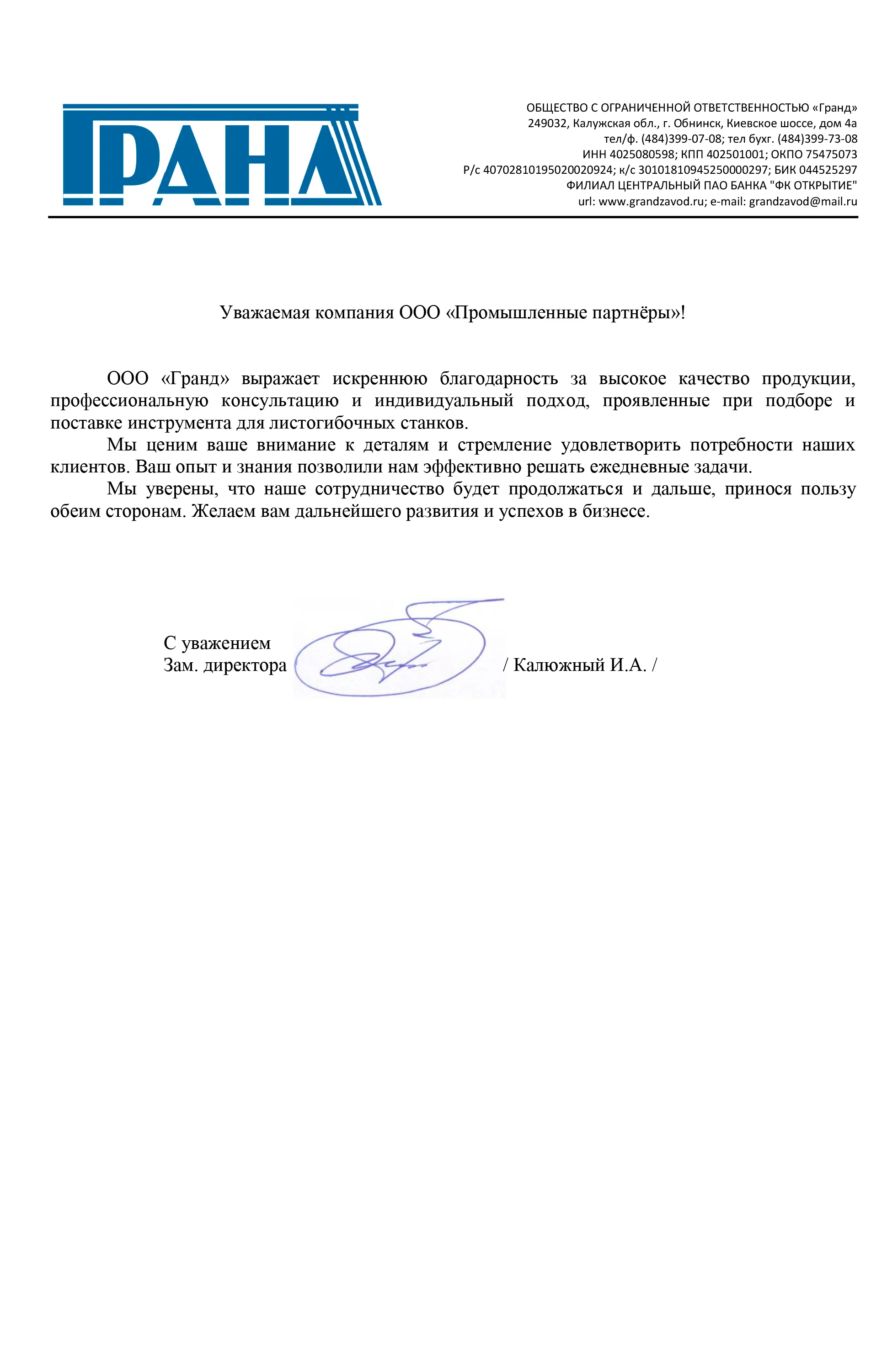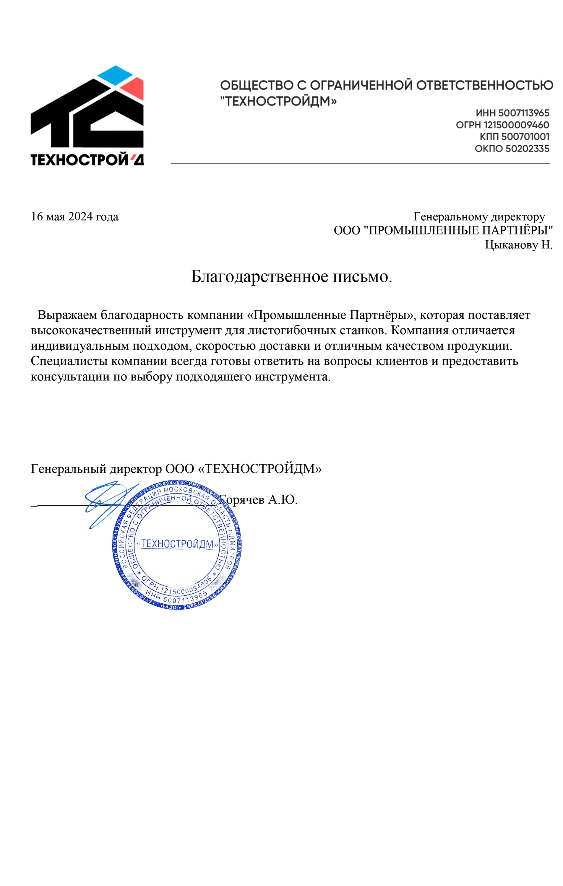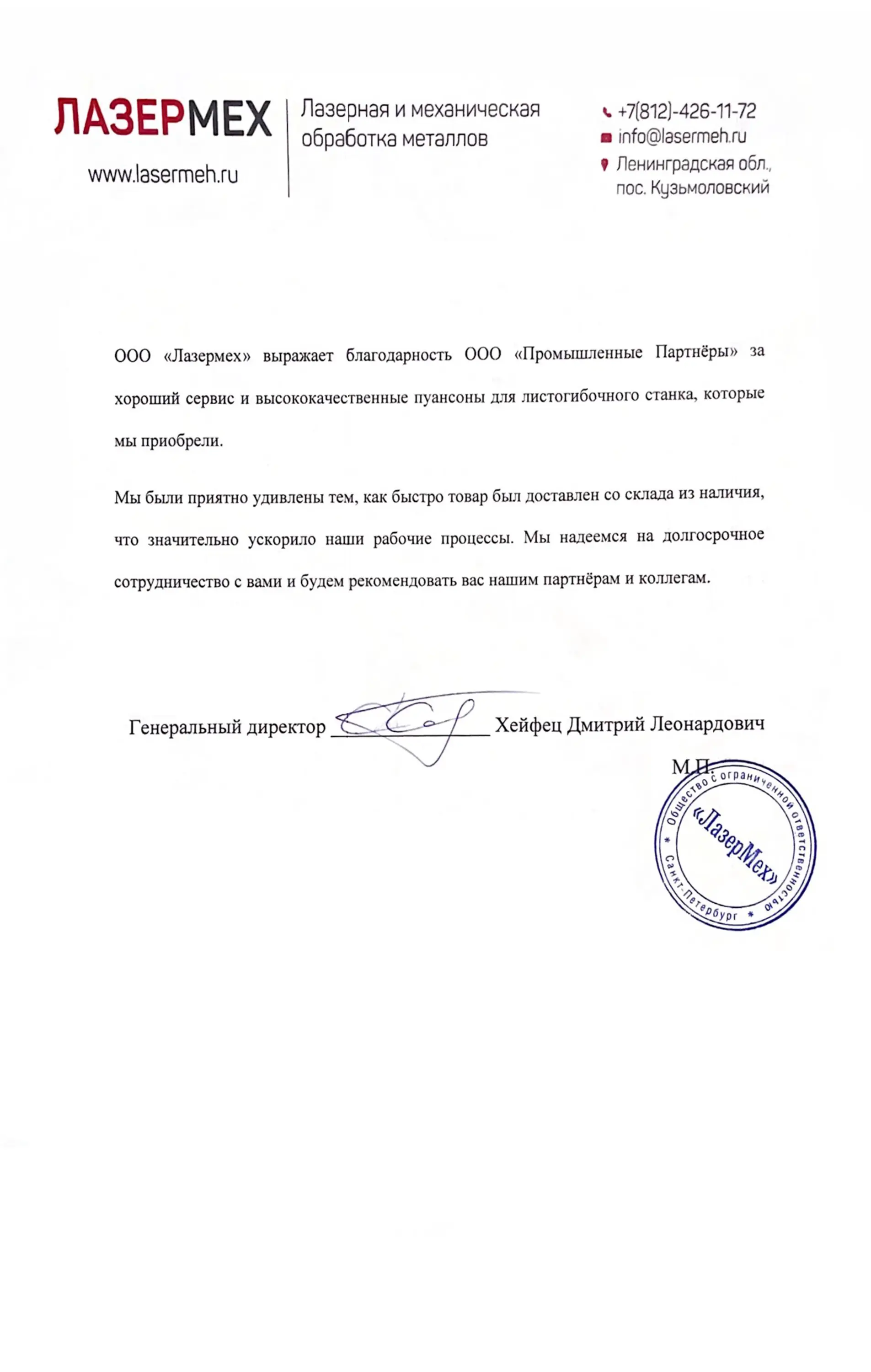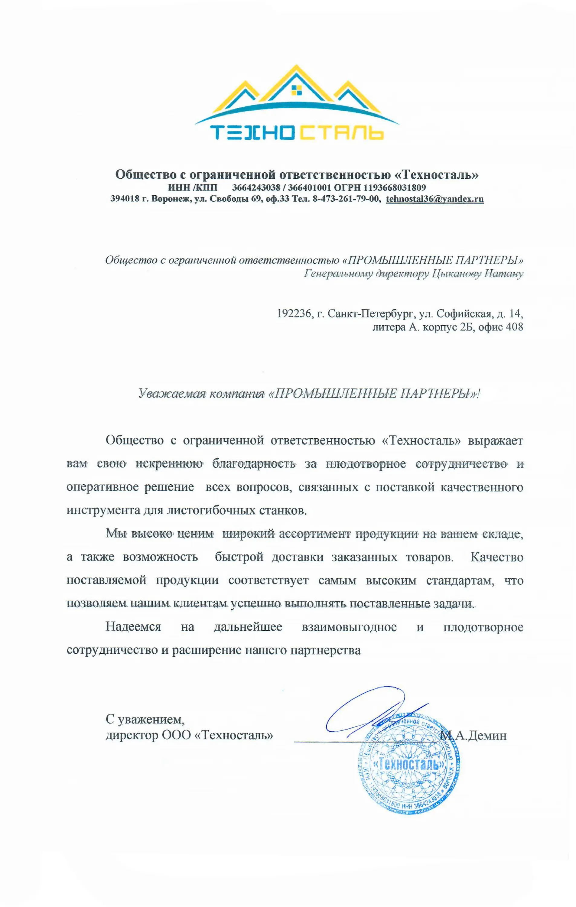 Отзывы | Промышленные Партнёры