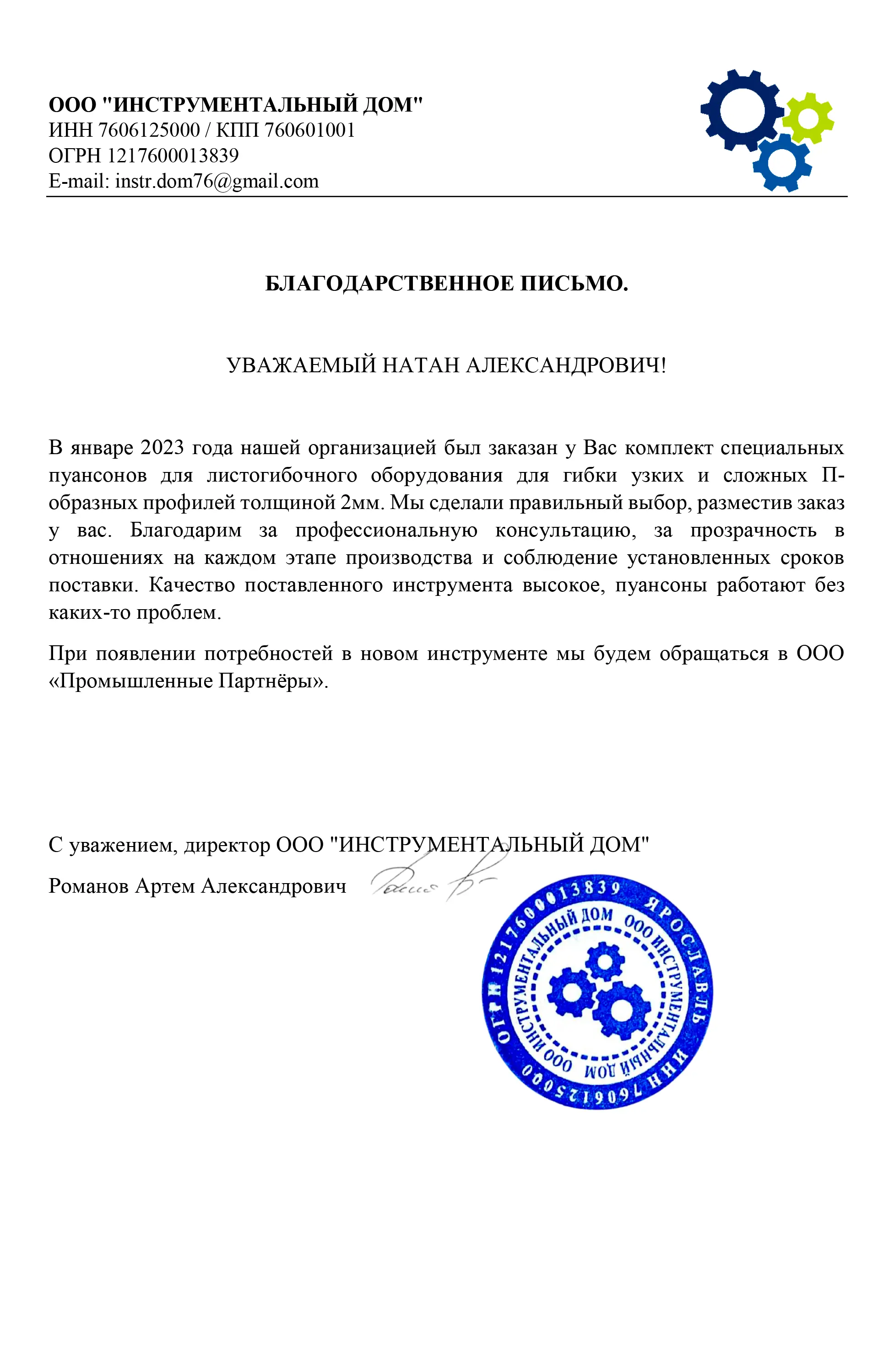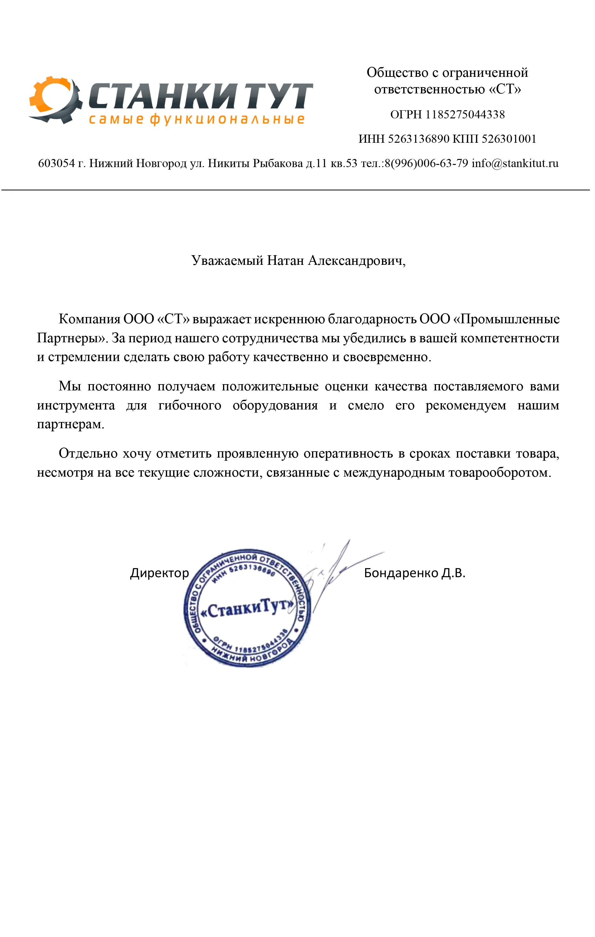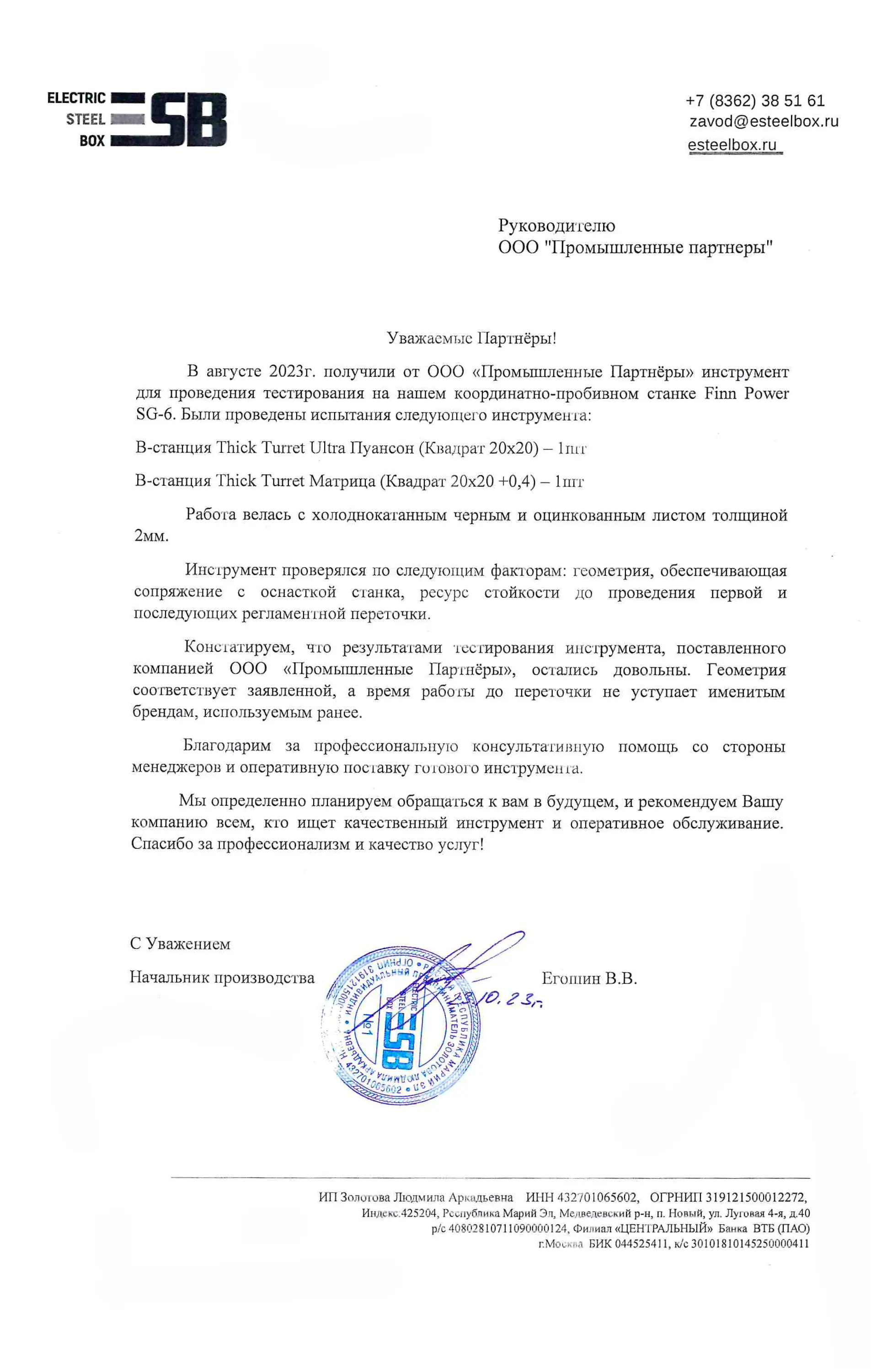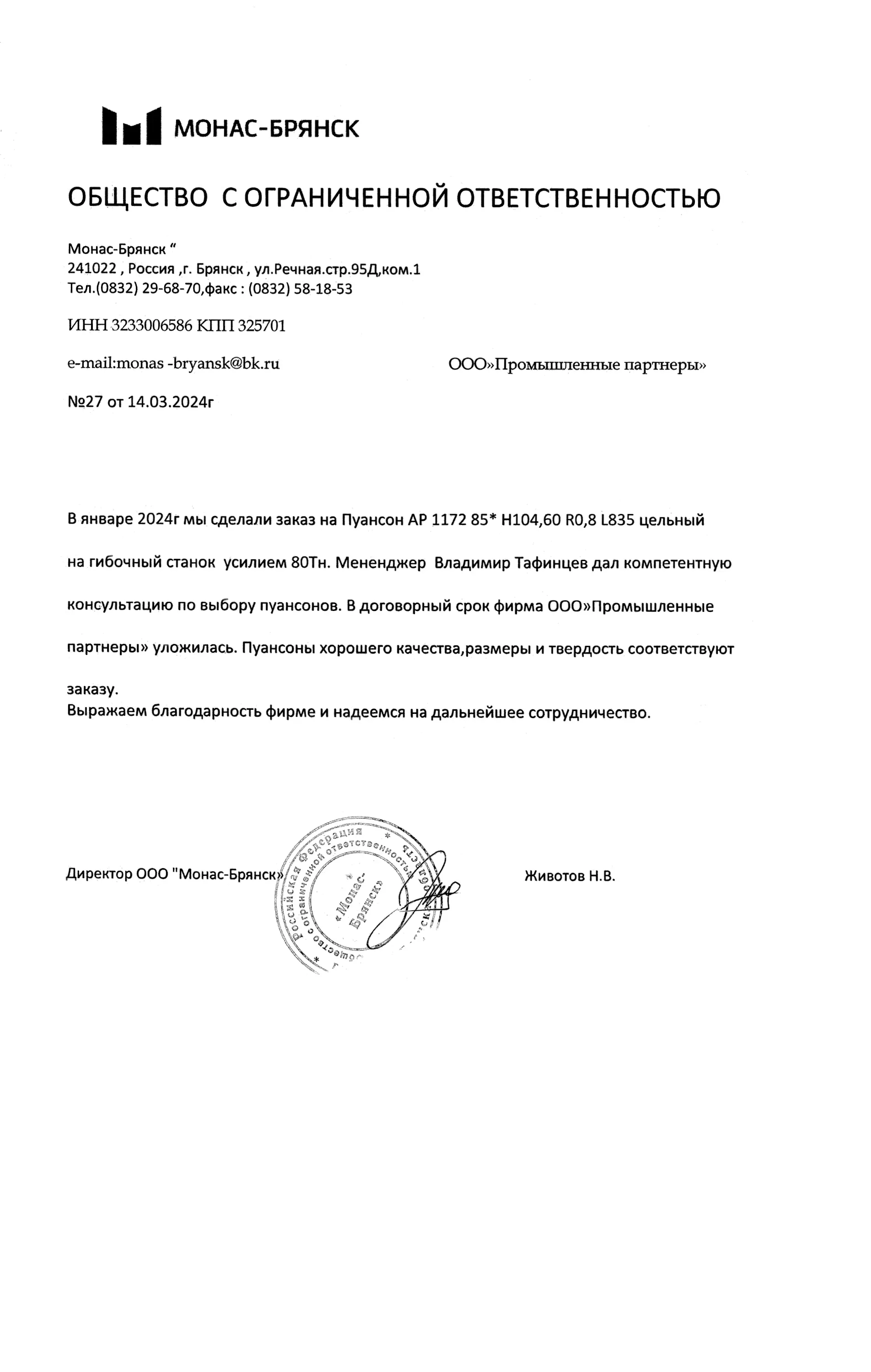 Отзывы | Промышленные Партнёры
